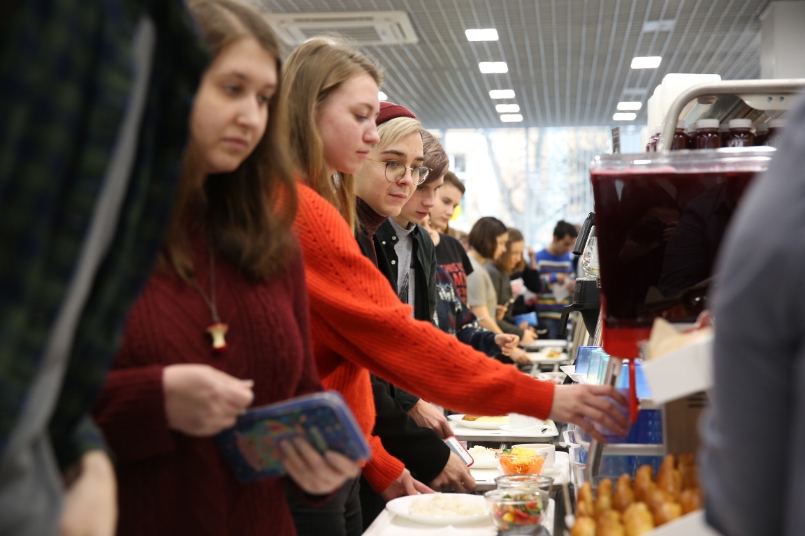 Столовую уже успели оценить студенты. «Мы так счастливы! Мы теперь можем просто не выходить из корпуса, не ходить во всякие кафе на «Арме» и есть прямо тут, — говорят Злата Лиман и Мария Шепшелевич, 1 курс образовательной программы «Филология». — Это восхитительно».